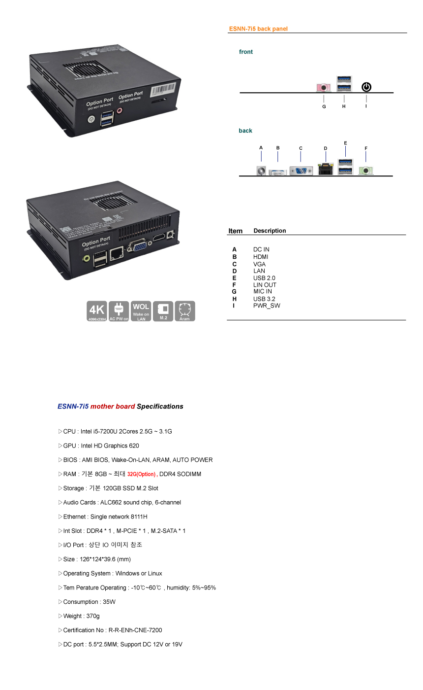 7세대 산업용컴퓨터/ i5 산업용 BOX PC / NANO보드 기반 초소형 사이즈 미니PC / 120G SSD, 8G RAM