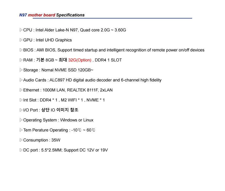 - 모델명 : CNE-N97 (셀러론급 산업용컴퓨터)